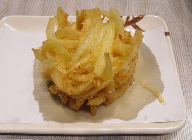普通はうどんの上に置いて食べるけど、今日は出来たてで暖かかったのでそのまま食べた。1人で食べるには量が多すぎるので、半分こするのが吉。