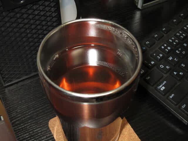 鉄瓶にほぼいっぱいのお湯を入れてお茶を出すと、先日の象印タンブラーがいっぱいになる。
