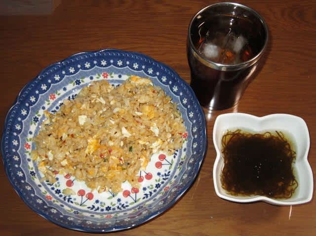 朝食:永谷園のインスタント焼豚炒飯、もずく