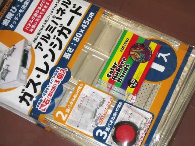 料理するとき、どうしてもあちこちに飛ぶのでこんなガードが欲しかった。以前にもこの店で似たようなのを買ったんだけど、それよりも倍ぐらい大きくて100円のものを見つけたので買っておいた。