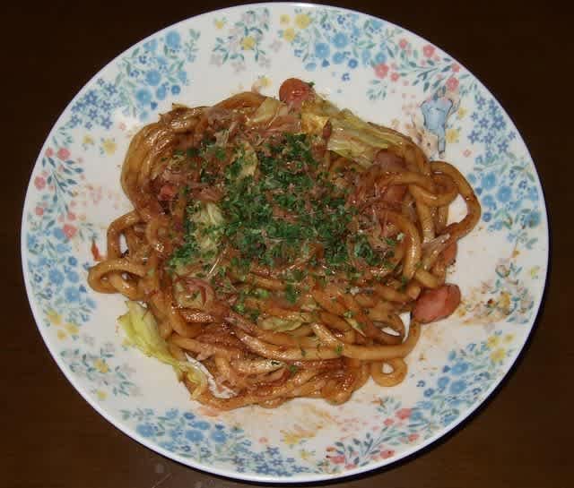 うどん玉を貰ったので久々に作ってみた。このうどんは少し細め。普段使ってるやつよりはコシがない。不味くはないけど、私的にはもう少し太めの方が食感が良い。焼きうどんとしては、ね。