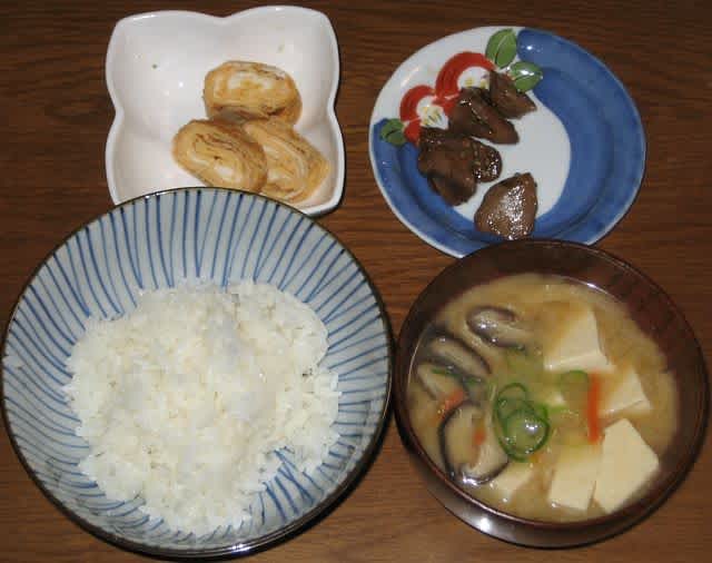 ふりかけはのり玉だったんだけど、かけたところの写真を撮り忘れた。卵焼きは弁当のおかずの残り、味噌汁も残り物。なぜか肝の甘露煮を買ってあった。自分の体の悪いところを治すには、その部位を食べたら良いというのは本当だろうか。そんなことを聞いたので時々食べるようにはしている。