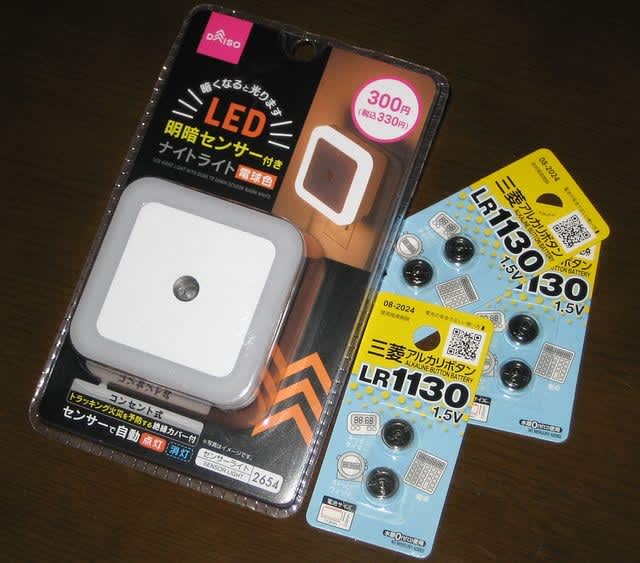 と、店内を歩き回っていて見つけたのが左のLEDライト。先日ケーズで買ったセンサーライトがとても良く、もう一個買いたいのだけど近所にケーズがないし、隣町まで買いに行くほどではないなぁと思っていたらこれがあった。