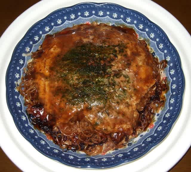 夕食:広島風モダン焼き(そば)大きめ