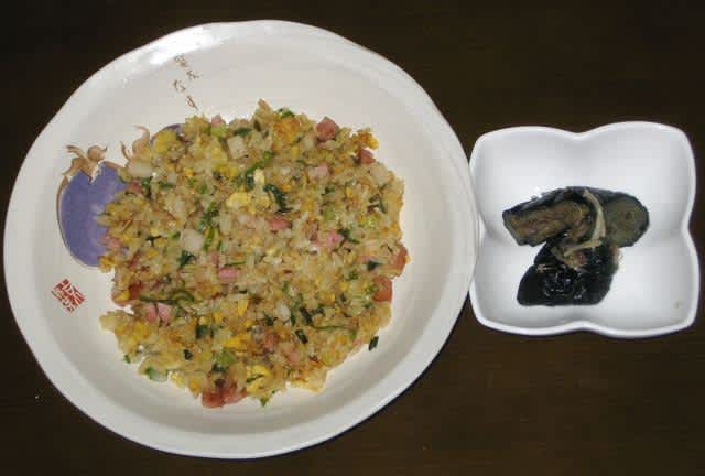 朝食:残り物でつくった炒飯、茄子の煮浸し