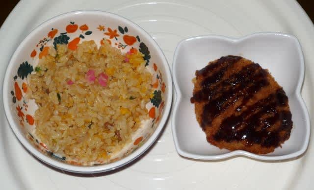朝食:炊飯器炒飯、セブンのコロッケ(50円バック)