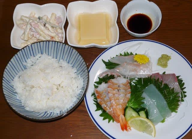 この刺身は「本日のオススメ品」で特価だったそうだ。量的にはこれぐらいで良いし、マグロなどではなく白身が多いのも良い。紫蘇の葉は多いのに、大根が少ない。珍しいな。私はこの葉と大根に醤油をつけて食べるのが好きなのだ。
