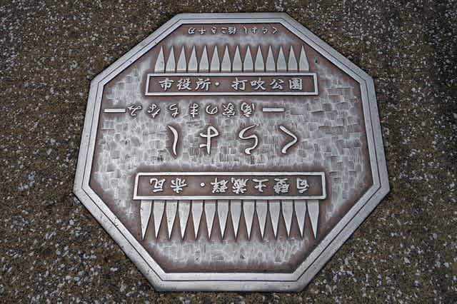 最初に出迎えてくれるのはこの道しるべ。マンホールの蓋のように地面にあるのだけど、ただの道しるべで取り外したりはできないように見える。