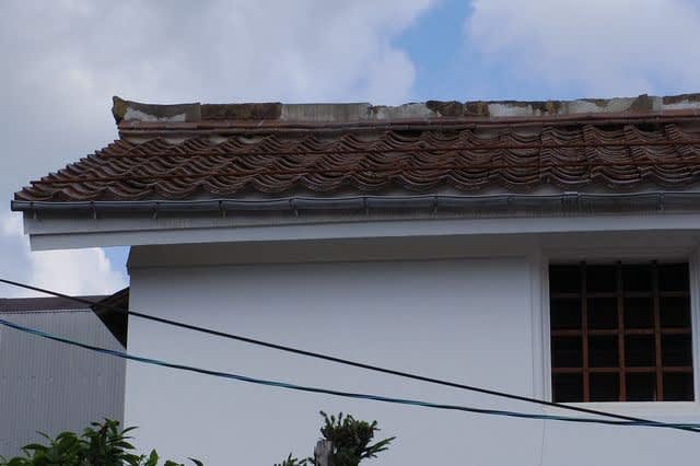 寒い地方での瓦の特徴。所々に引っかかりがある。雪の降らない私の地方の屋根にはこんなものはない。
