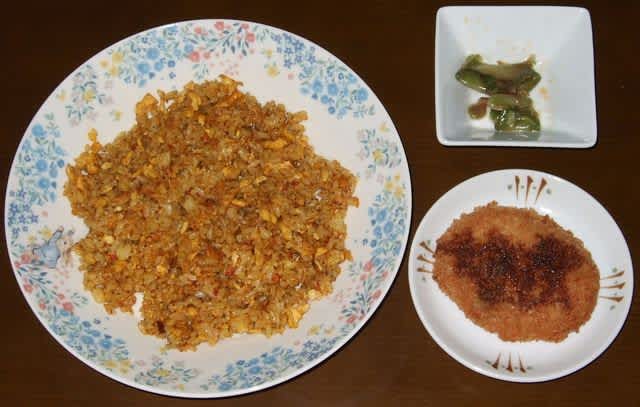 さて、暇が出来た時にカレー味の炒飯を作ってみた。S&Bのカレー粉をふりかけてみたのだけど、かなり入れないとカレーっぽくならないようだ。普通は入れないだろうネギやキャベツ、豚肉を入れてみた。まぁ普通の味。すごく美味しいとは言えないけど、いつもと毛色が違うのが良いところかな。