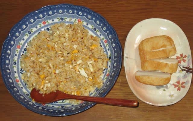夕食:ざる+卵炒飯、お刺身はんぺん