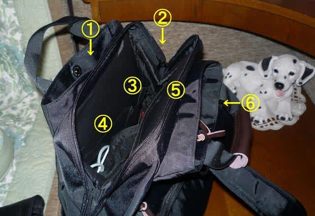 ⑤は大きなポケット。ノートパソコンや大画面のパッドも入るだろう。私は使ってない。