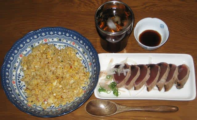 夕食:永谷園の焼豚炒飯、鰹のたたき