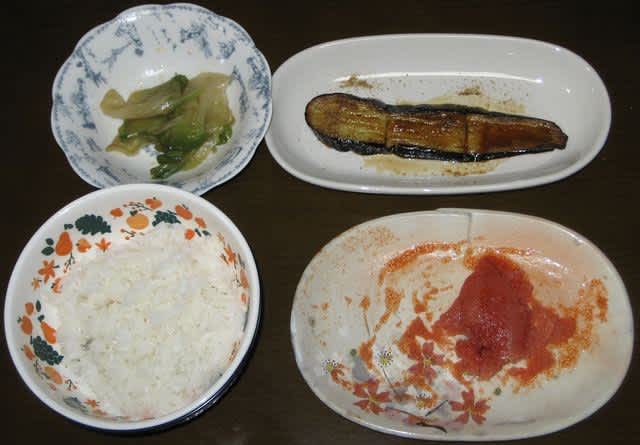 茄子をカリッと揚げてみた。そこに塩かけたもの。好評だった。半分食べられた。