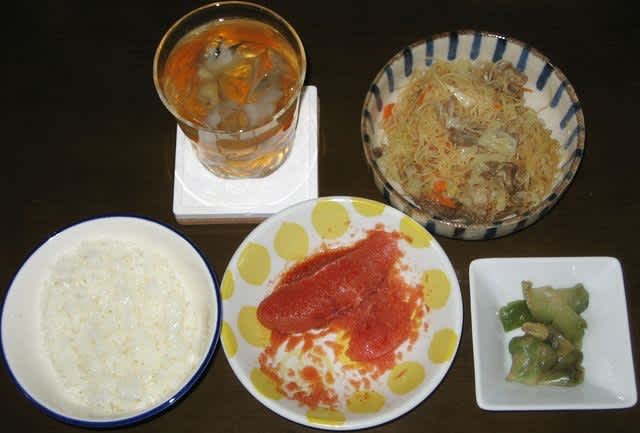 明太子のためにご飯を炊いた。後は残り物ばかり。