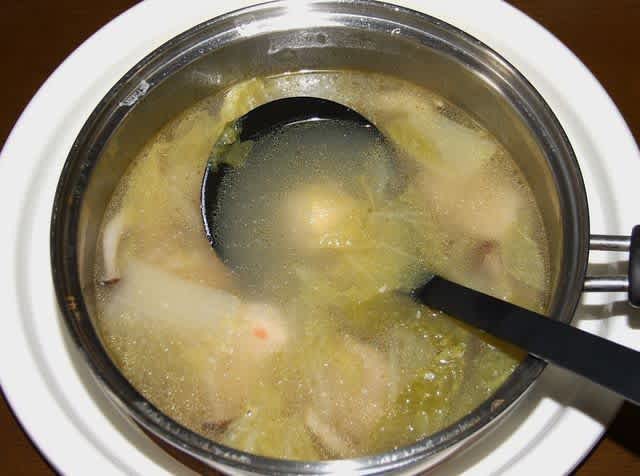 夕食:鶏鍋の残り、余っていたご飯で雑炊