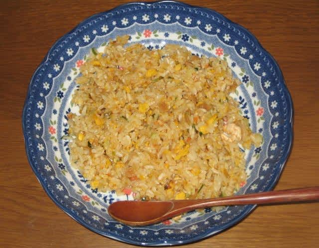 夕食:卵ご飯 ※わかめご飯(改)、焼きビーフン、魚フライ、搾菜