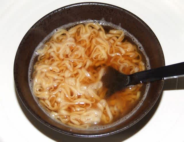 ダイソーで売っている小さなチキンラーメンを買ってみた。3個入りで「マグカップで食べる」仕様なのだそうだ。別に食べなくても良かったんだけど、どんなものか試すために作ってみた。マグカップは洗いにくいのでこの小さな陶器お椀にした。作るときには上に同じくセリアのシリコン蓋をのっけた。百均様々だね。
