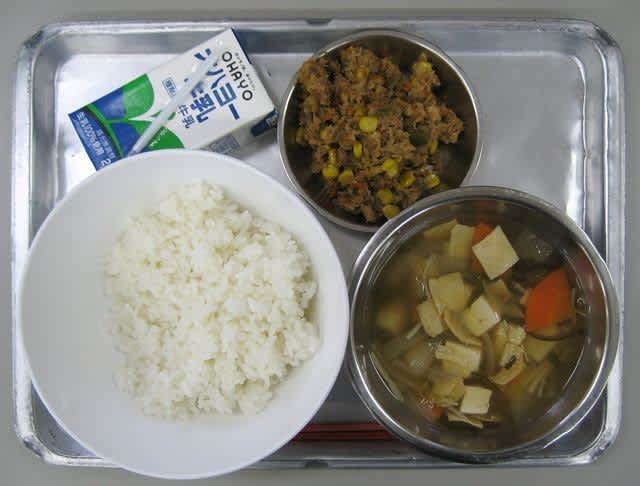 写真の具をご飯にのっけて食べる。ご飯が食べきれないから本当はご飯量を減らしてもらいたいんだけど、私の食べている場所ではそういうことが出来ない。廃棄になるのはもったいないけど、こう言う体制だとしかたがない。