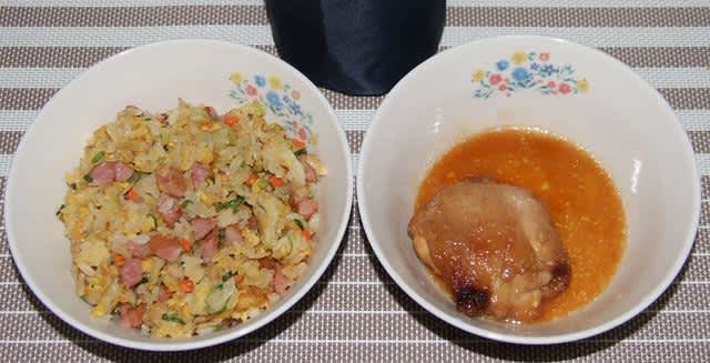 朝食:炒飯風混ぜご飯、鶏肉の照り焼き