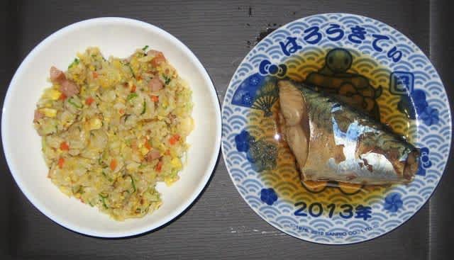 朝食:炒飯風混ぜご飯、サバの煮付け