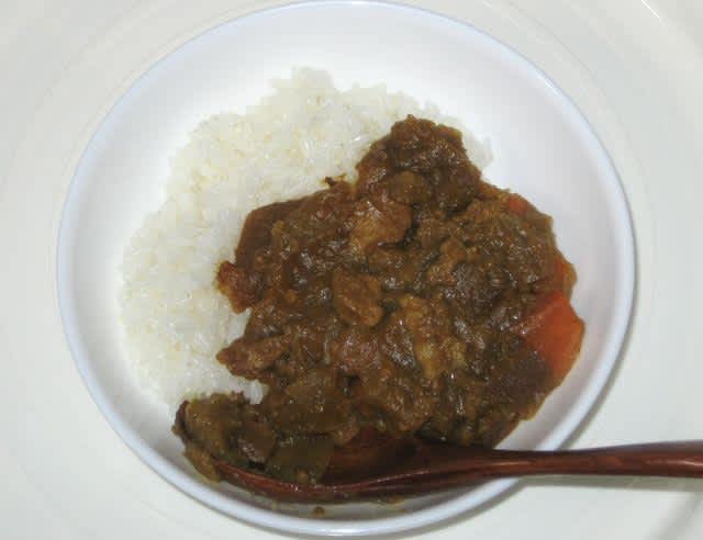 カレーの残っていたのをご飯にかけてレンジ。皿に入っていた残りなのでこんな感じ。鍋だったら再度温めたんだけどなぁ。