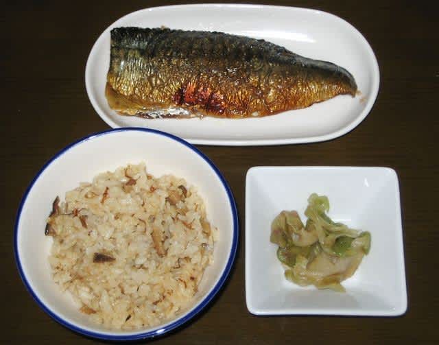 朝食:セブンのサバの照り焼き、搾菜、鶏釜飯