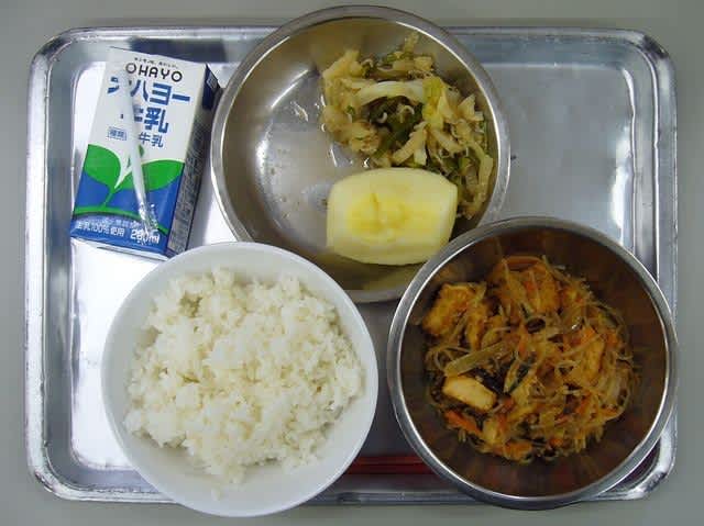 昼食:麻婆春雨、リンゴ、大根の中華和え