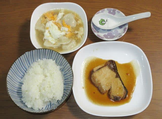 夕食:雲呑、ブリの照り焼き