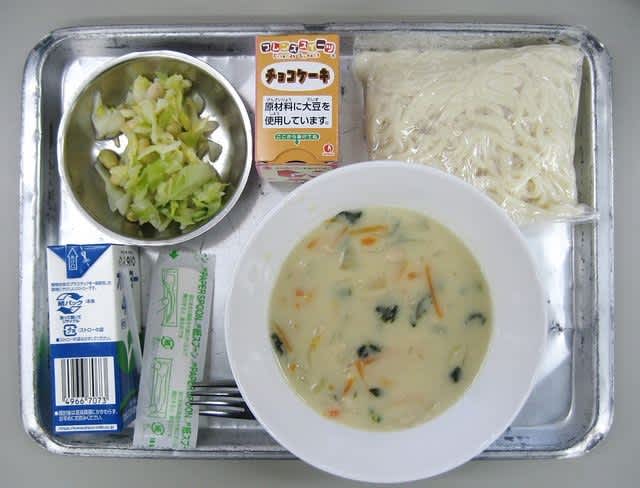職場のご飯はこれで一時休止。いつも最後は甘いデザートがでる。今回はチョコケーキ。小さいけど、こういうのを好きな人には良いだろう。私の食べている部屋ではなぜか3つ残り、若い人が奪い合って食べていた。私は結構。