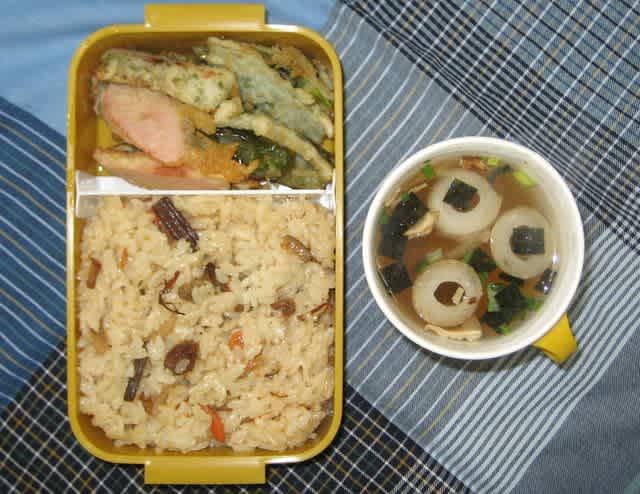 お弁当を作ってみたかった。炊き込みご飯を作ったので、ほんの少しのおかずがあれば詰めて終わりでいいやと思った。昨日、ピーマンの天ぷら、竹輪の磯辺揚げ、ついでに魚肉ソーセージも揚げてみたものがあったのでそれを詰めた。本当は卵焼きか巾着卵を作って入れようと計画していたのだけど、しんどくてもうどうでもいいやとこれにした。簡単に炊き込みご飯おにぎりだけでも良かったんだけど、まぁこの程度で。