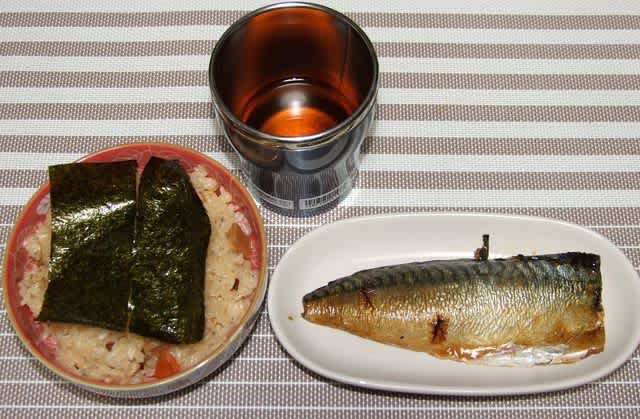 炊き込みご飯をおにぎりにした。弁当箱がなかったのでこれに詰めた。見た目が悪い。