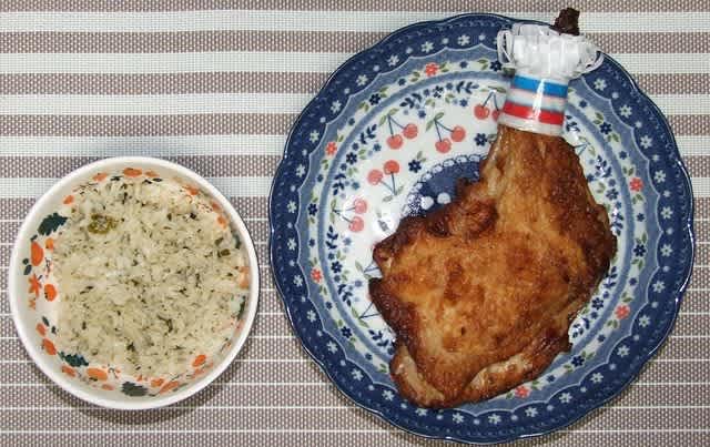 朝食:わかめご飯、Christmasチキン