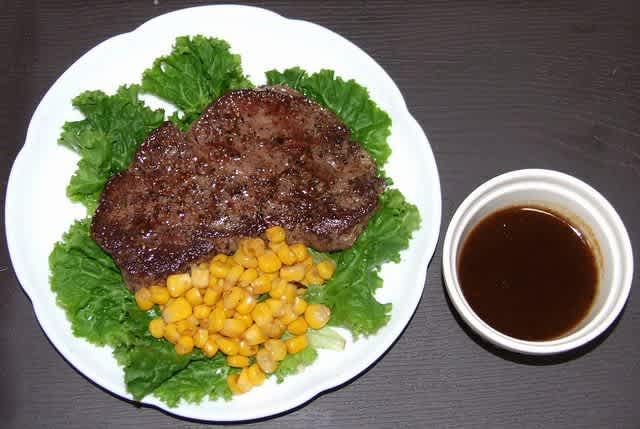 水栽培できる野菜キットがあった。ベビーグリーン グリーンスパン と書いてあるけど、これが品種名なのか商品名なのか不明。サニーレタス?みたいな生で食べられるやつだろう。これを使ってみたかった。じゃぁ付け合わせ(逆か)は肉だよね。と言うことでステーキにしてみた。