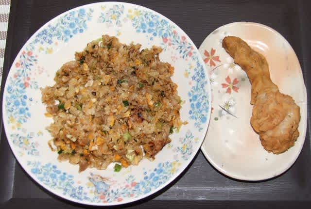 朝食:自作炒飯、KFCの残り