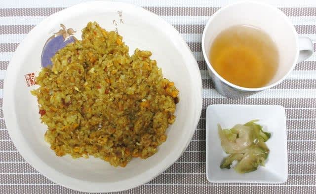 夕食:グリコのカレー炒飯、搾菜、タマネギコンソメ