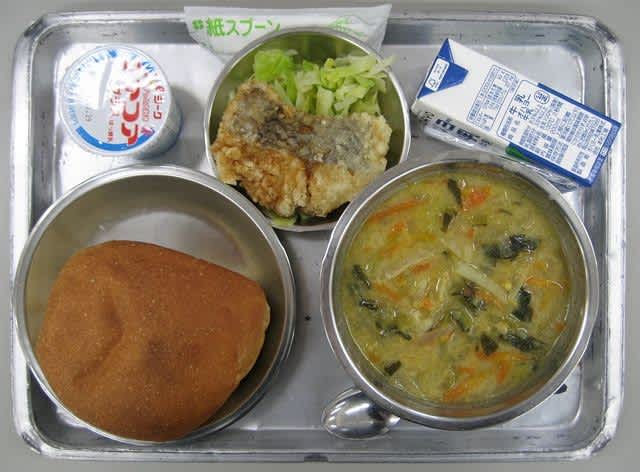 昼食:豆乳スープ、照り焼きフィッシュバーガー、ヨーグルト