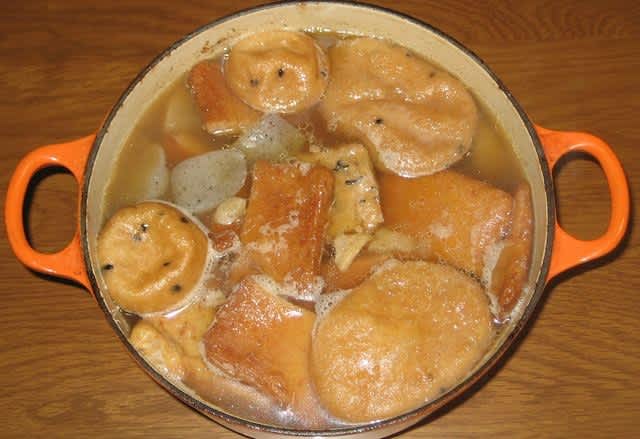 新しい大根を買っていたので金曜の夜に作った。普通ならもう一晩おいて味を染み込ませるのだけど、今回の大根は現時点でとろとろになって崩れかけていたので食べることにした。聖護院ではないのにもの凄く柔らかい。驚くぐらいだ。