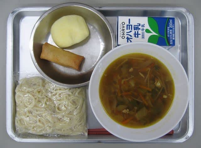 うーーん、最近のメニューは素晴らしい。この春巻も最高に素晴らしい。昔より小さくなったのはお金のせいだろうな。りんごも非常にうまかった。今度買ってきたい。