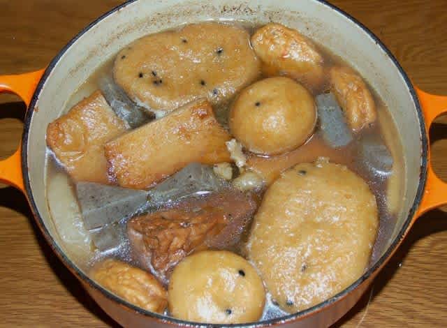 三日かけて作りましたよ。いつもながらサイコー! 若い人と話していて、私の作るおでんは旨いぞと言うと「おでんなんかコンビニで買えば良いじゃない。」なんてヌカすので、コンビニのおでんを食べて500円払いたかったら、私のおでんを食べたら5000円払いたくなくなるぐらいの差だ!!と断言してしまった。それぐらい味には自信がある。お店のおでんは私には辛すぎるので、やはり自分の作るやつが最