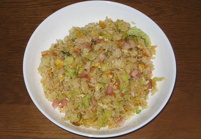 朝食:キャベツ入り炒飯、スープ