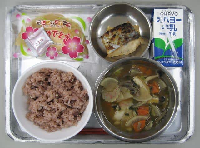 昼食:サワラの西京焼き、赤飯、のっぺい汁