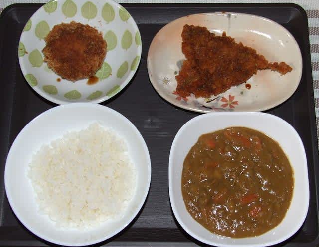 朝食:筍ミンチカツ、アジフライ(小)、カレー