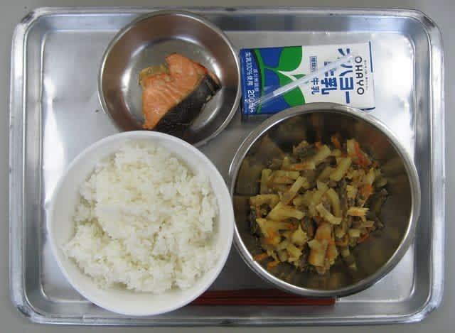 昼食:ジャガイモのきんぴら、鮭の焼き漬け