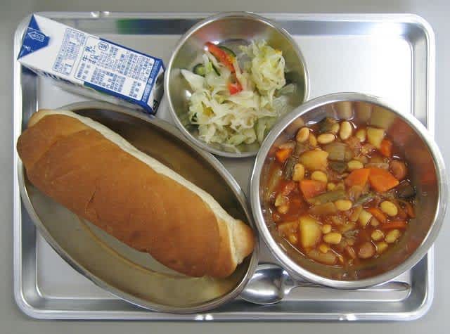 昼食:マーマレードサラダ、ポークビーンズ、米粉パン