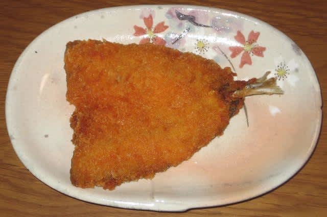 夕食:ミートスパゲッティ+粉チーズ、アジフライ
