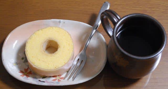 朝が多かったせいもあってお腹が空かなかった。下の写真は昨日のおやつ。いわゆるデパ地下で買ったバームクーヘンだそうだ。