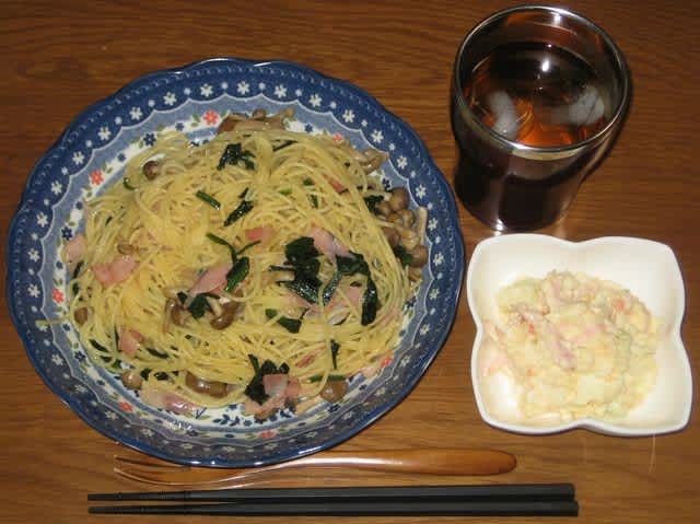夕食:和風スパゲッティ、ポテトサラダ