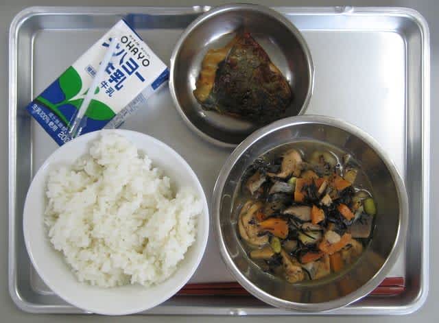 昼食:ひじきの五目煮、アジのカレー醤油焼き
