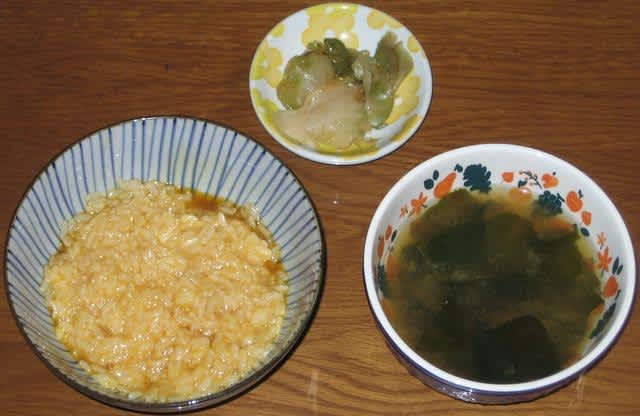 味噌汁が余っていたので、ご飯に卵かけて卵ご飯と一緒で簡単に。久々に卵ご飯を食べた気がする。